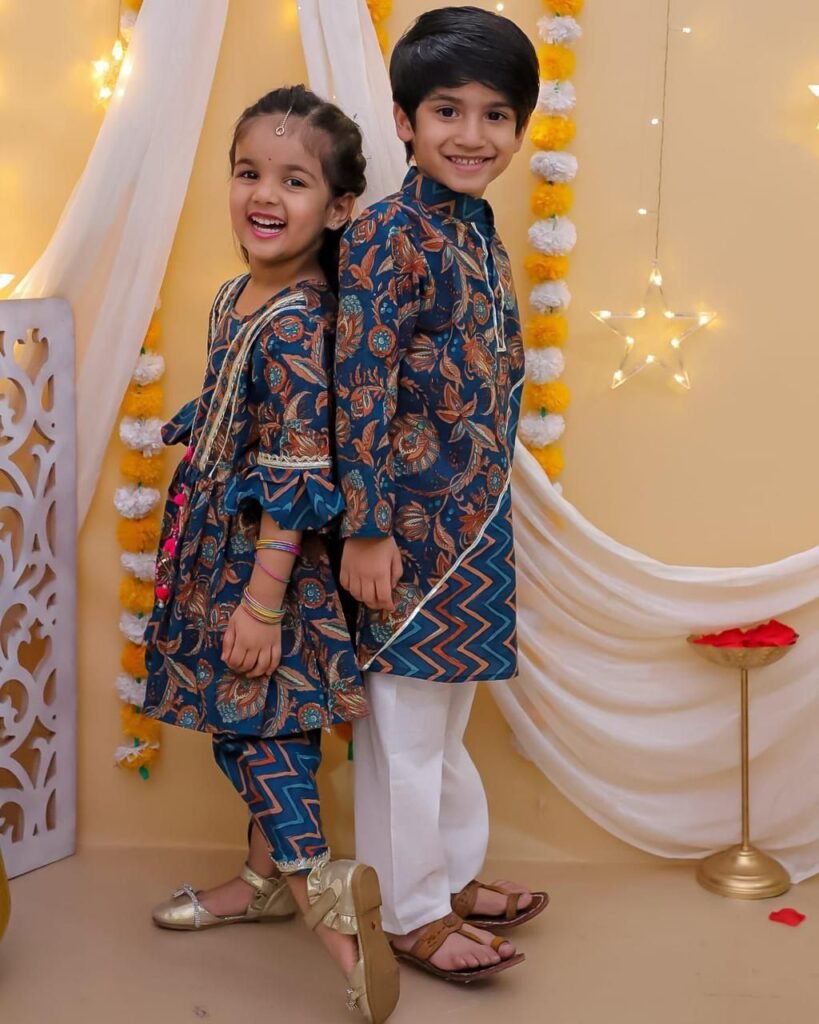 Wedding Sibling Outfit Set – Coordinated Cotton Anarkali & Kurta Pajama with Jacket