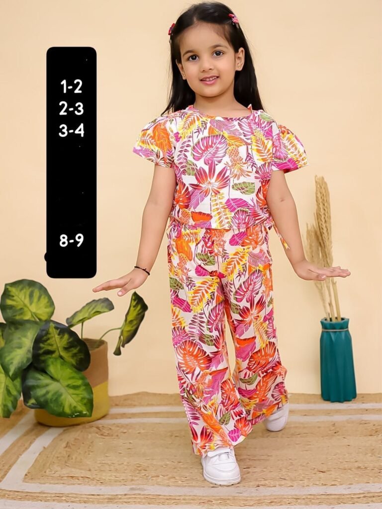 Jungle Print Frilled Coord Set – Crop Top & High-Waist Pant for Girls